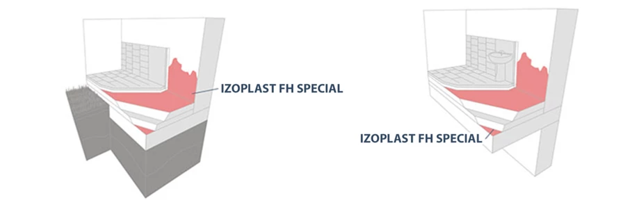 Folia hydroizolacyjna IZOPLAST FH SPECIAL przeznaczona jest do stosowania wewnątrz pomieszczeń przeznaczonych na stały pobyt ludzi, przede wszystkim w pomieszczeniach wilgotnych (np. łazienkach, kuchniach, pralniach), do wykonywania izolacji przeciwwilgociowej pod okładziny i wykładziny np. z płytek ceramicznych, glazury, terrakoty, podłogi z drewna i paneli oraz wykładzin syntetycznych. Może być stosowana na powierzchniach wykonanych z betonu, gazobetonu, na cementowych tynkach mineralnych i płytach gipsowo-kartonowych.